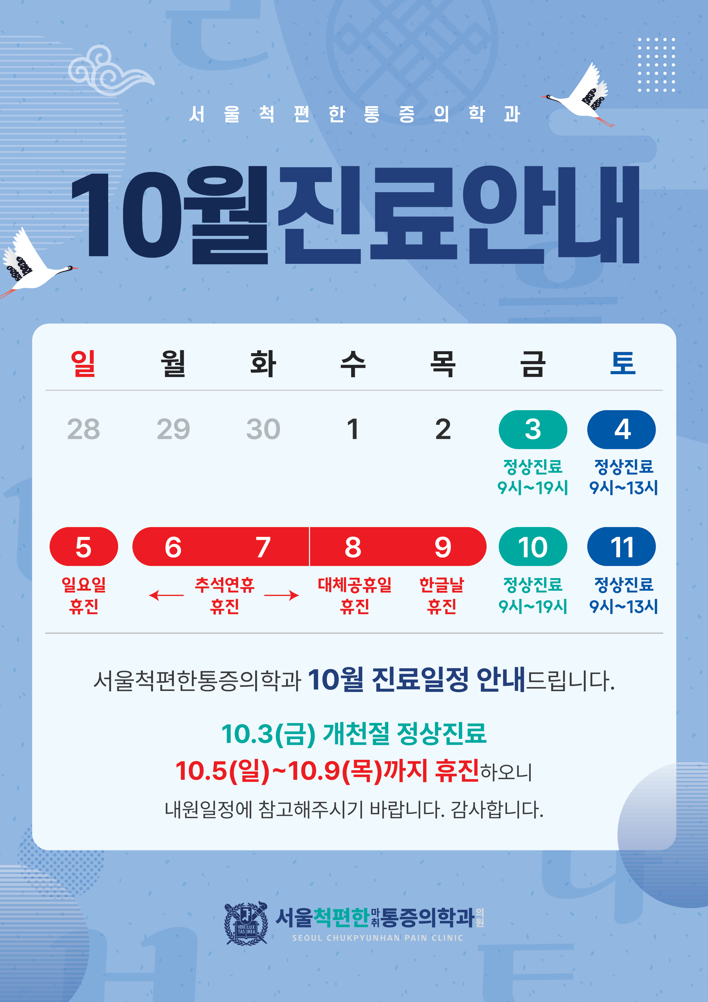 * 토요일, 일요일은 점심시간 없이 진료합니다.